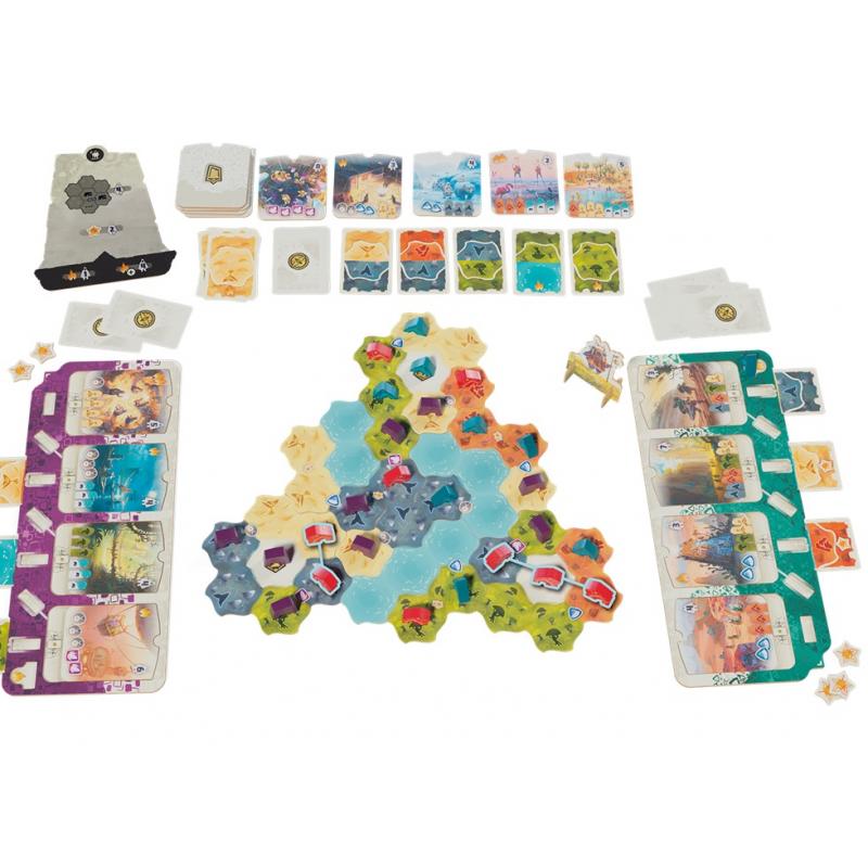 Grâce à un système de placement malin, des objectifs à valider (tuiles Histoire) pour marquer plus de points et des effets de terrain variés, chaque décision tactique impacte votre score final. En plus de la conquête de territoires, vous devrez maîtriser le feu, récolter des baies et connecter vos camps pour maximiser votre score. Tout en mettant des batons dans les roues de vos adversaires !