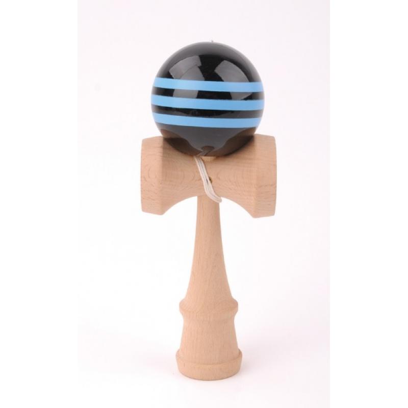Kendama Hetre boule 6 cm boule noire avec bande bleu