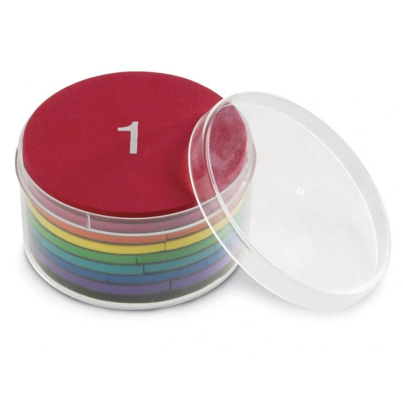 Placez les pièces codées par couleur sur n'importe quelle surface magnétique pour ajouter, soustraire et comparer des fractions.
