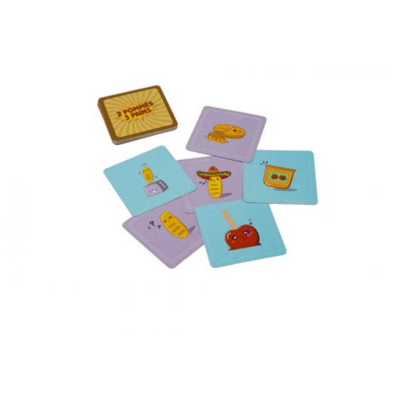 2 Pommes 3 Pains est un jeu d’annonce. Les joueurs tirent une carte à tour de rôle et annoncent une valeur de Pomme et une valeur de Pain. Si un joueur se trompe ou prend trop de temps à réfléchir, il ramasse l’intégralité des cartes posées en pénalité. Pour gagner il faudra récupérer le moins de cartes possible !