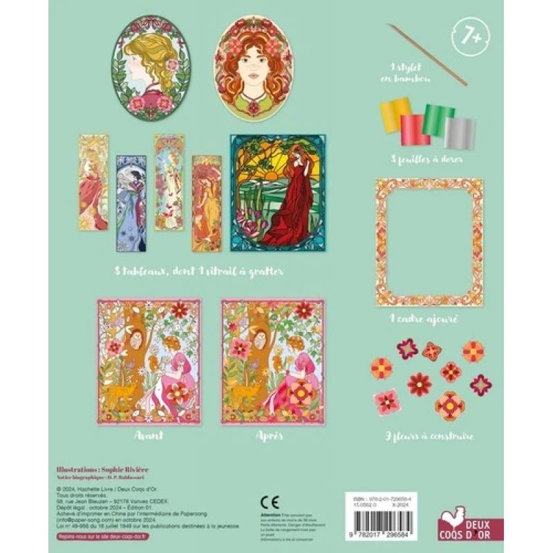 Un livret de 16 pages accompagne le coffret, il contient une présentation du courant art nouveau ainsi que les consignes pour réaliser les activités et les modèles des tableaux finis.
