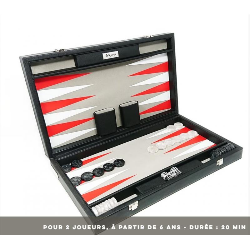backgammon pliable SIMILI CUIR, ZONE DE JEU EN FEUTRINE, avec fermetures en métal - 30 pions NACRés - 4 dés - 1 videau - 2 gobelets.